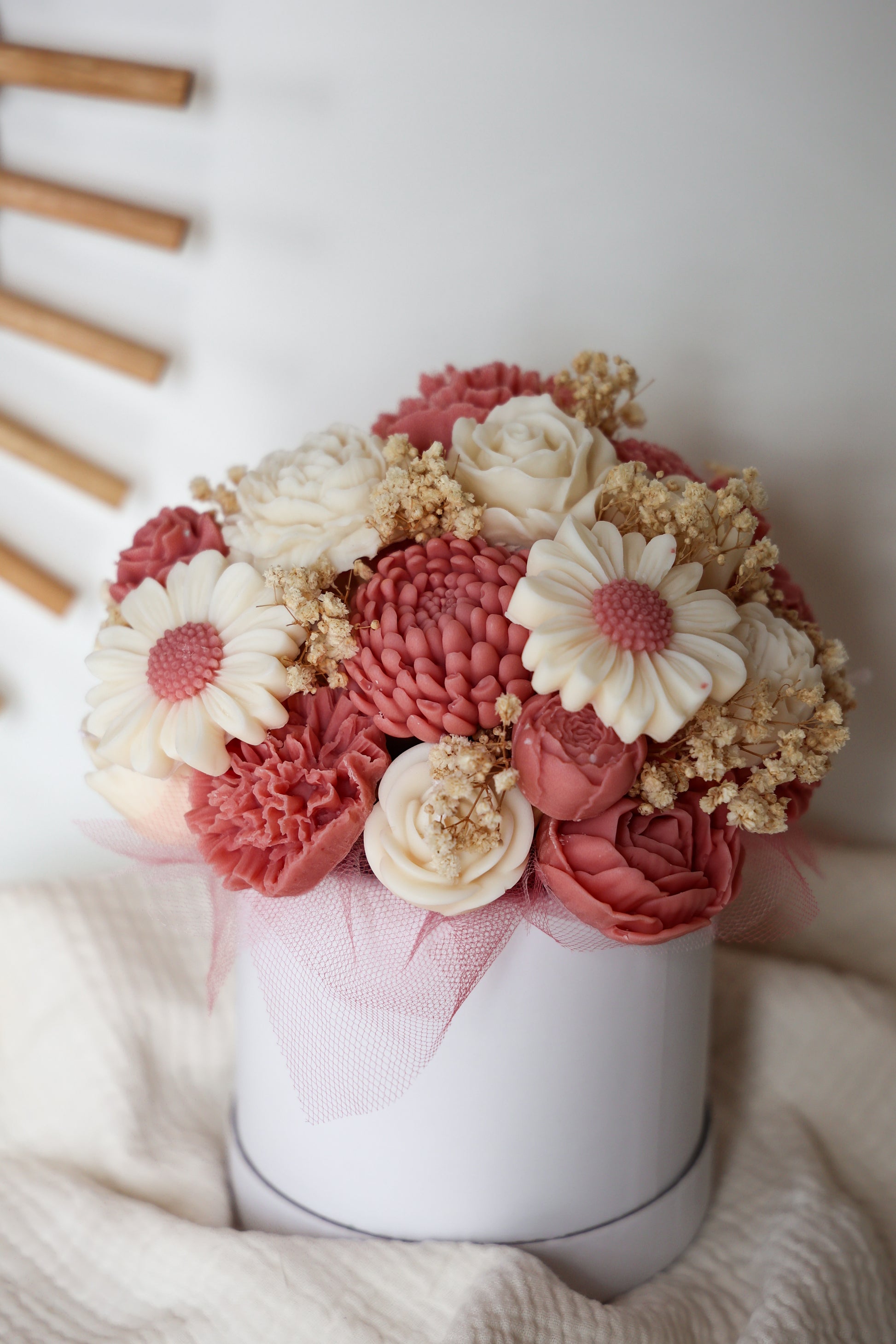 Blumenstrauß aus Wachsblüten Altrosa