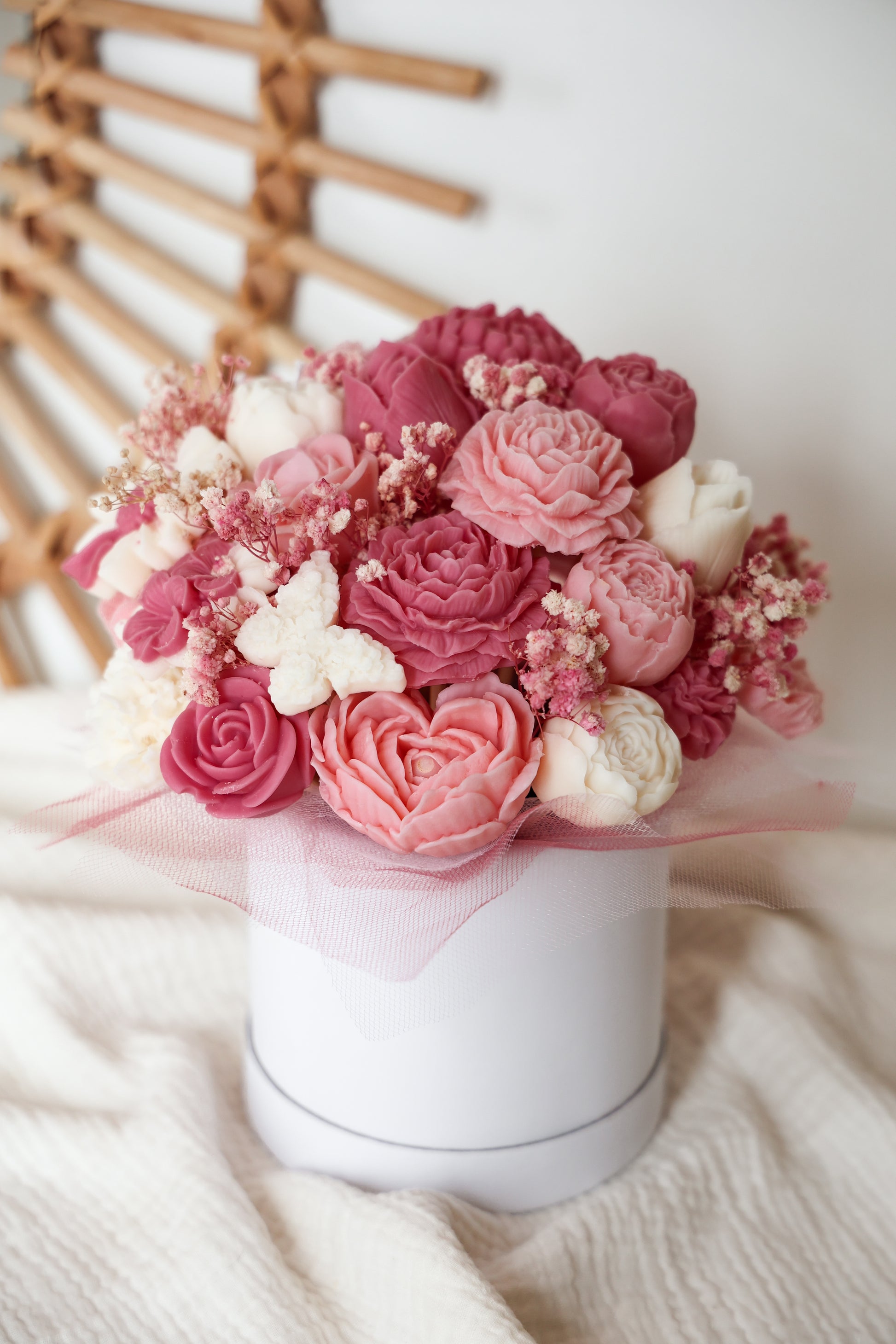 Blumenstrauß aus Wachsblüten Berry/Rosa