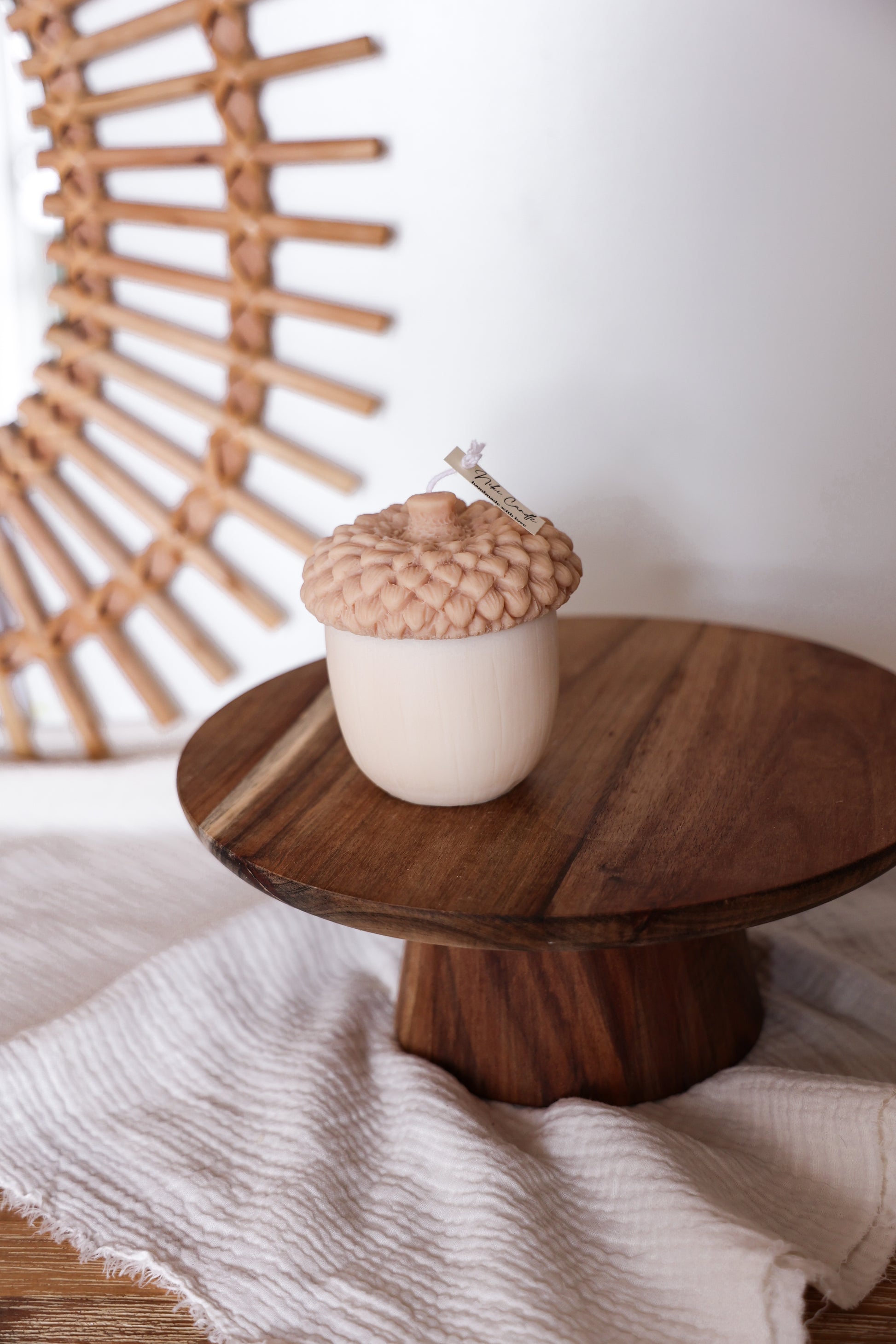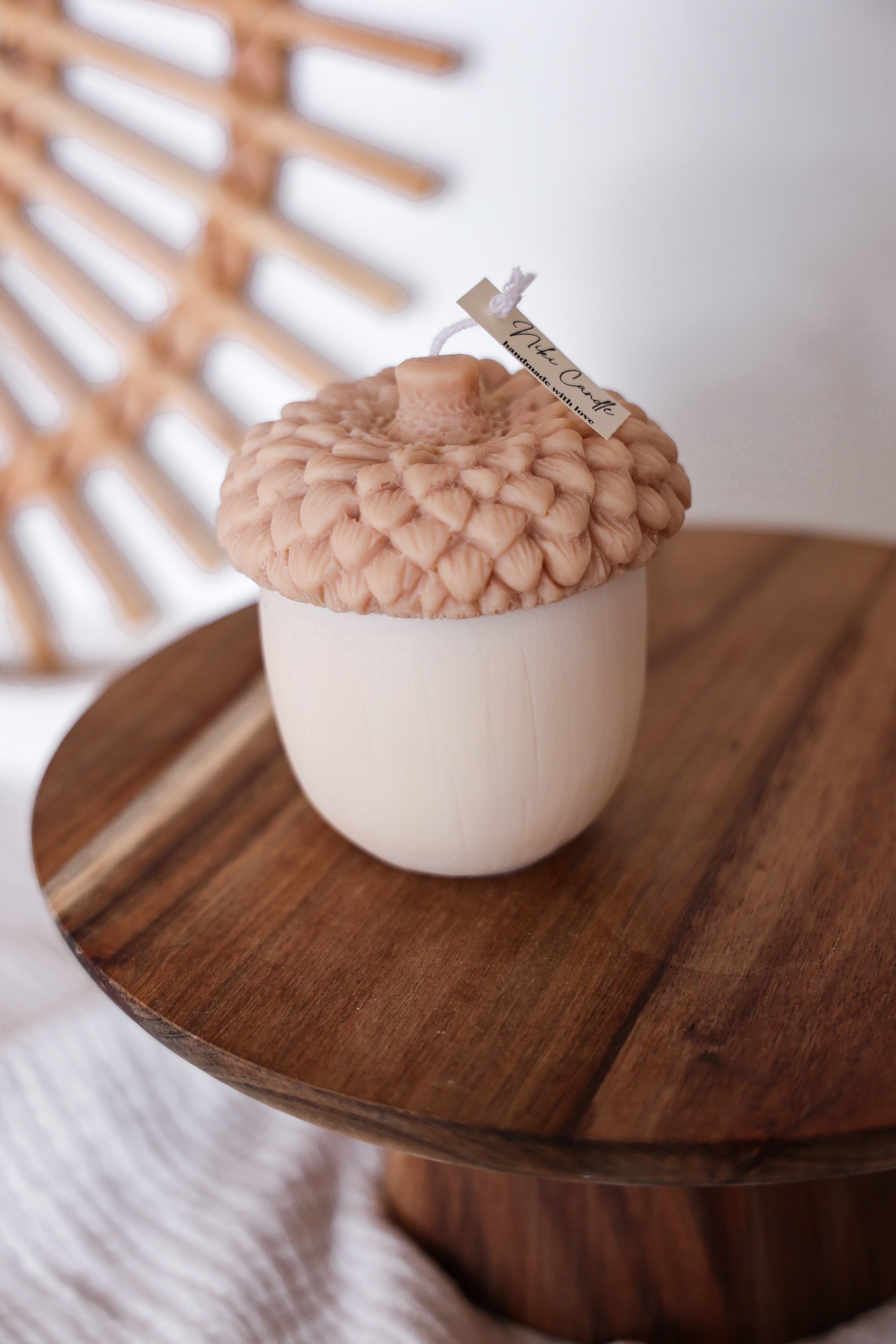 Die handgefertigte herbstliche Eichelnuss Kerze ist aus reinem Rapswachs und der Baumwolldocht machen sie zu einer umweltfreundlichen, veganen, biologisch abbaubaren und nachhaltigen Option – genau wie all unsere Kerzen.