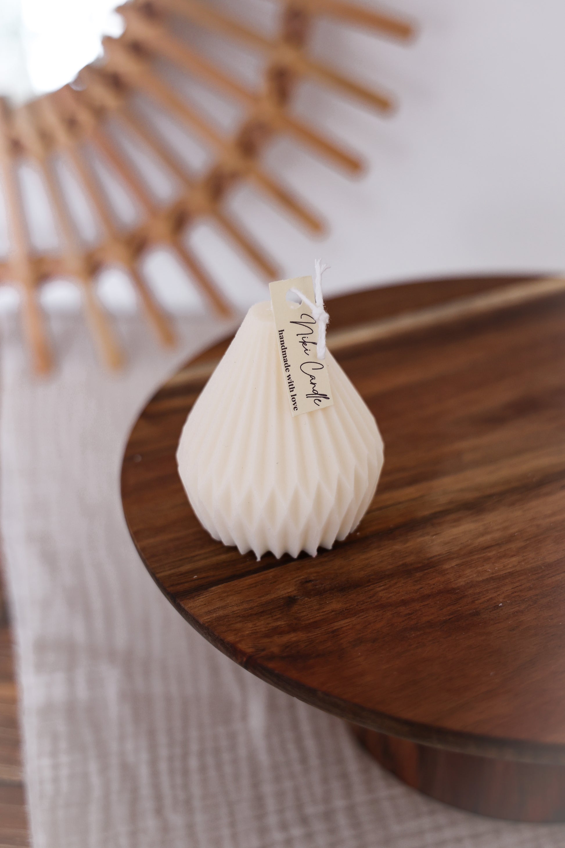 Handgemachte Kerze in geometrischer Birnen Form