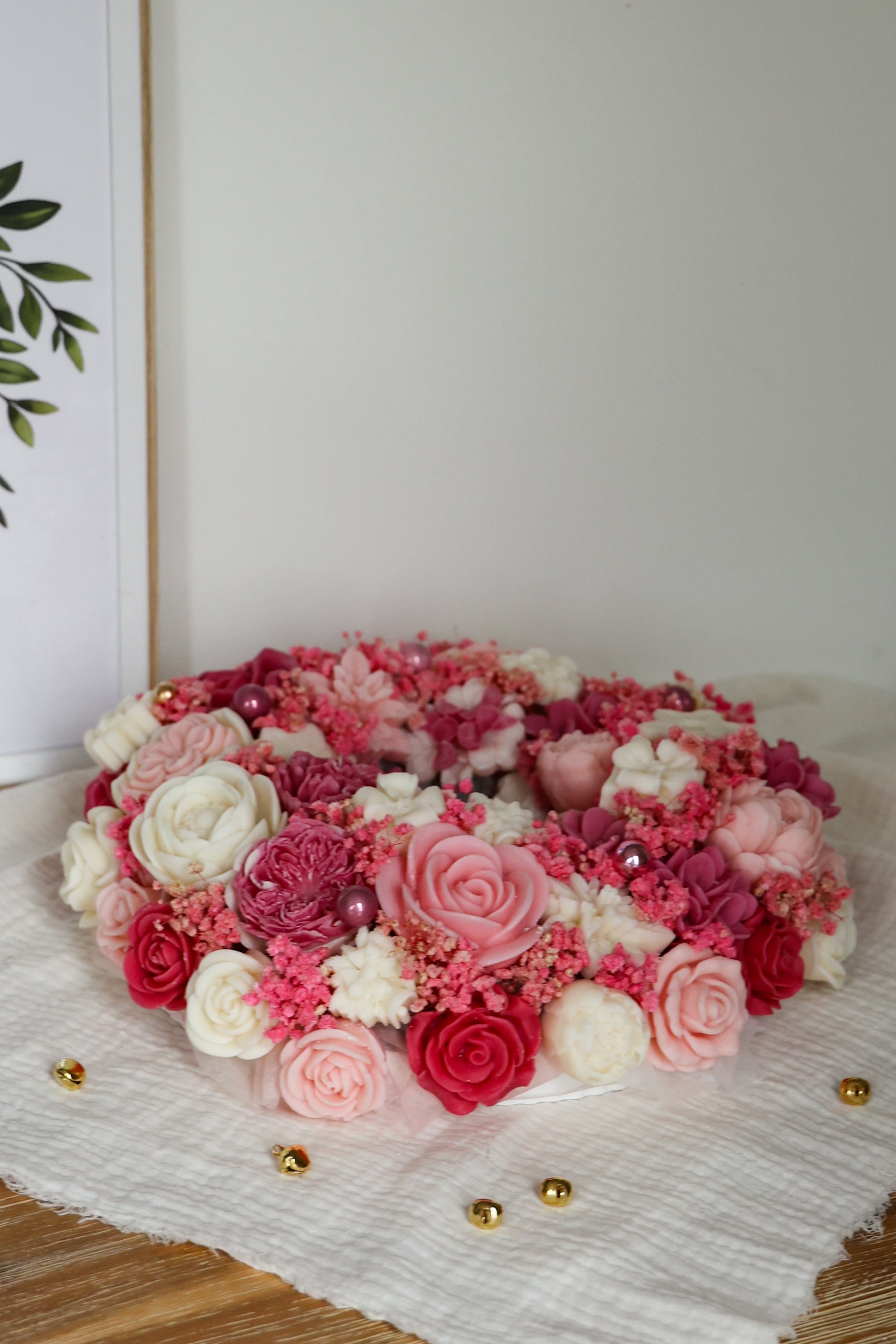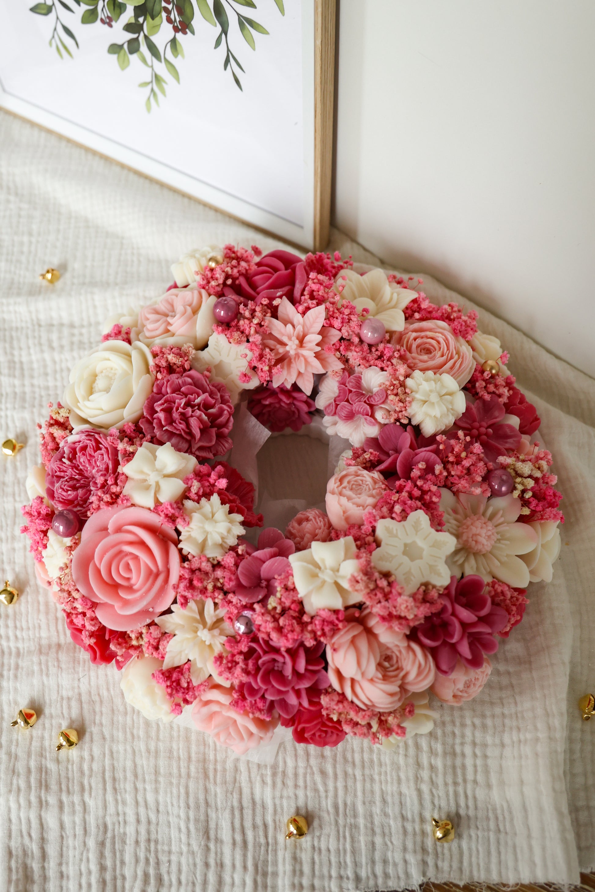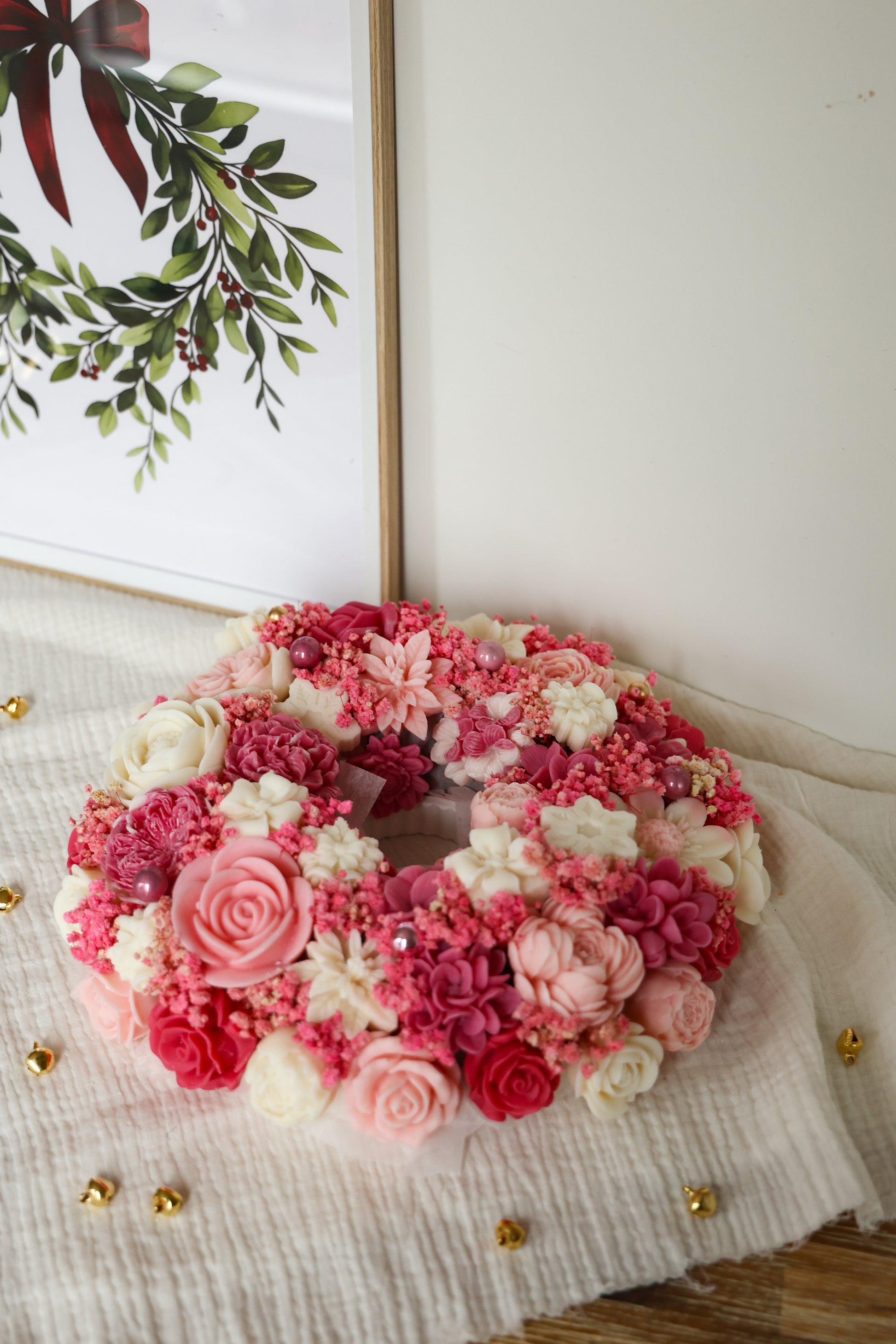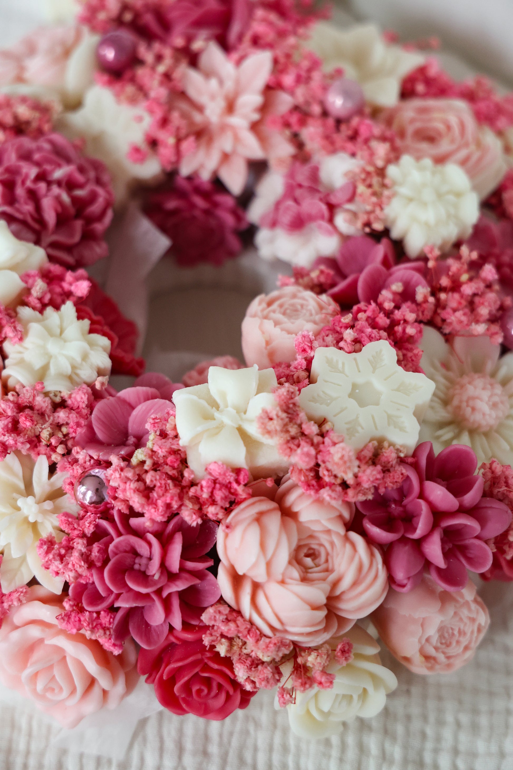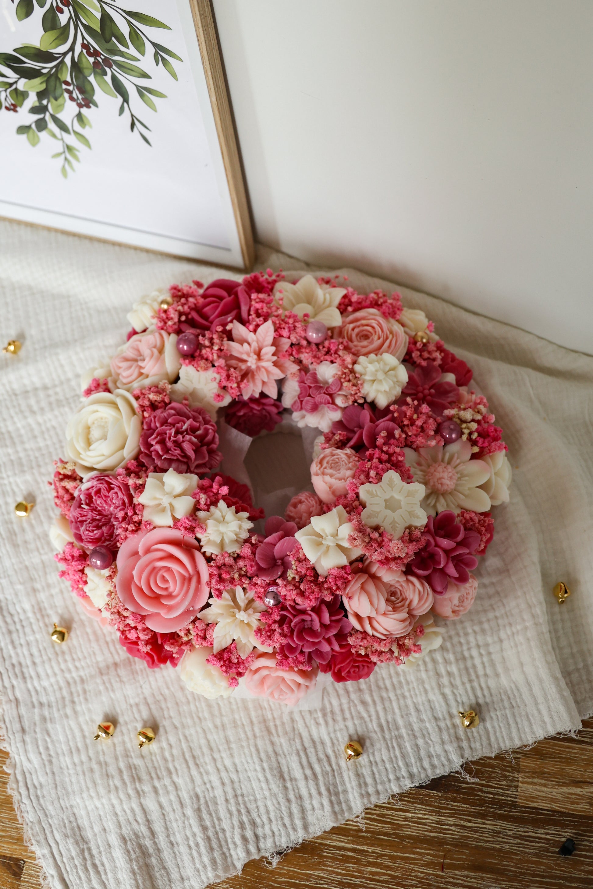 AusverkauftGroßer Weihnachtskranz aus Wachsblüten