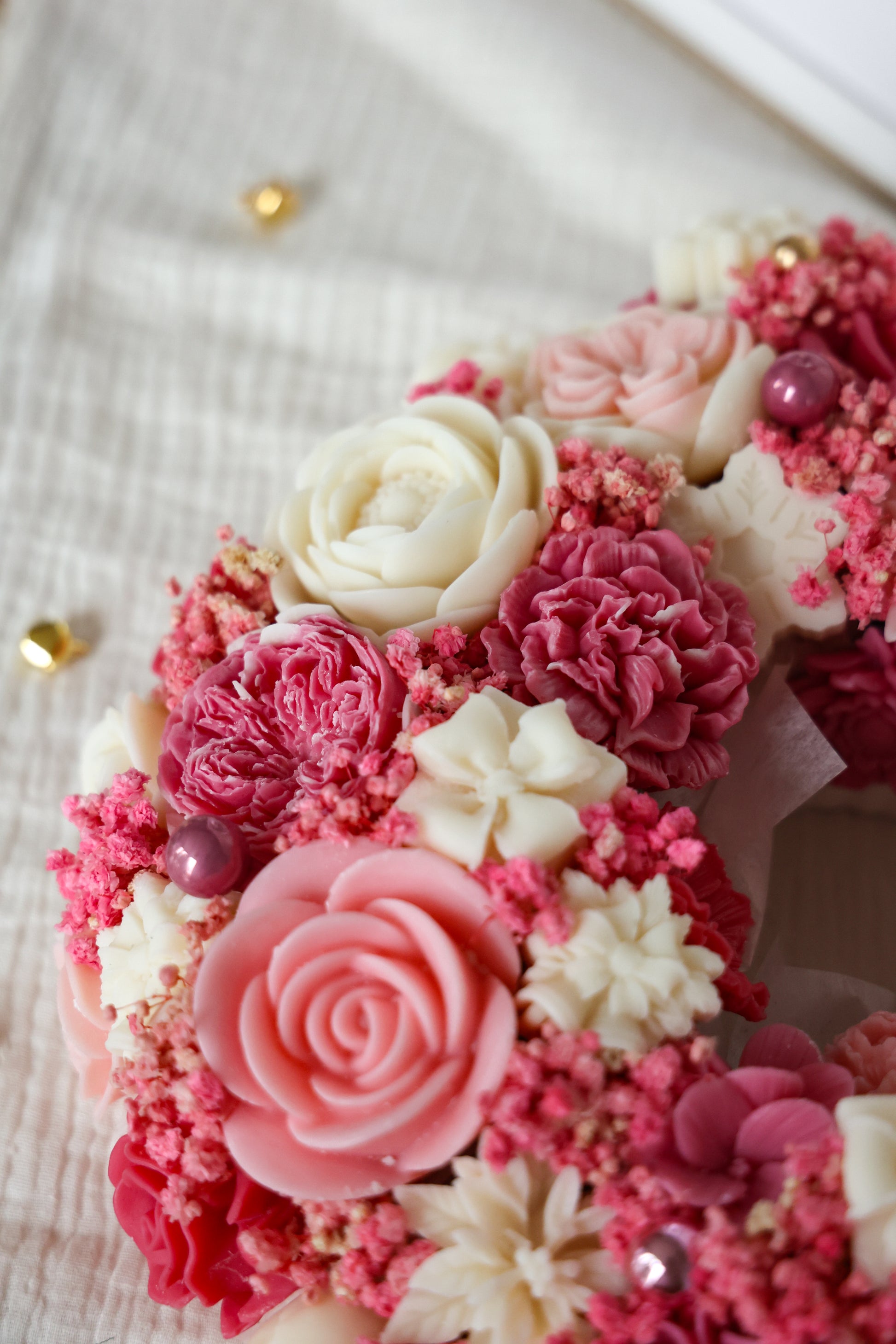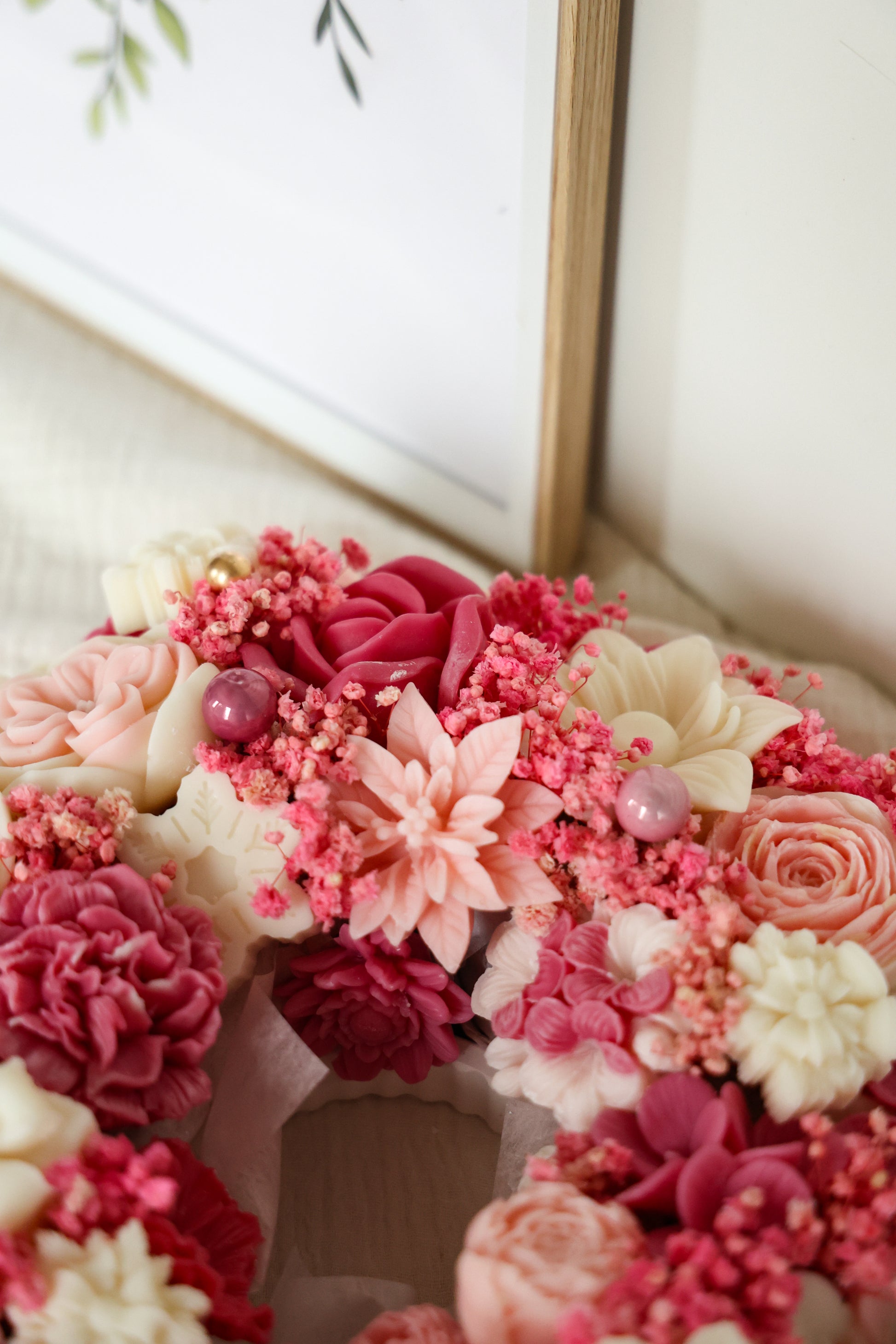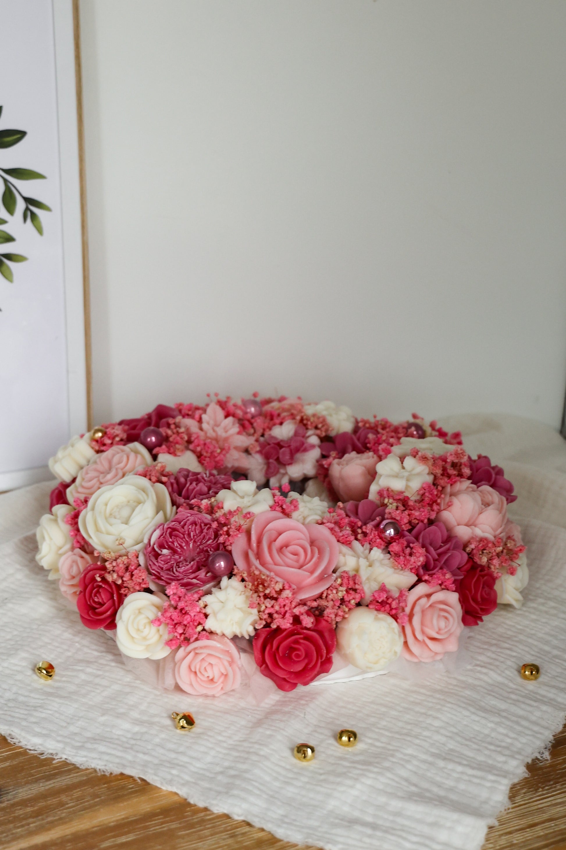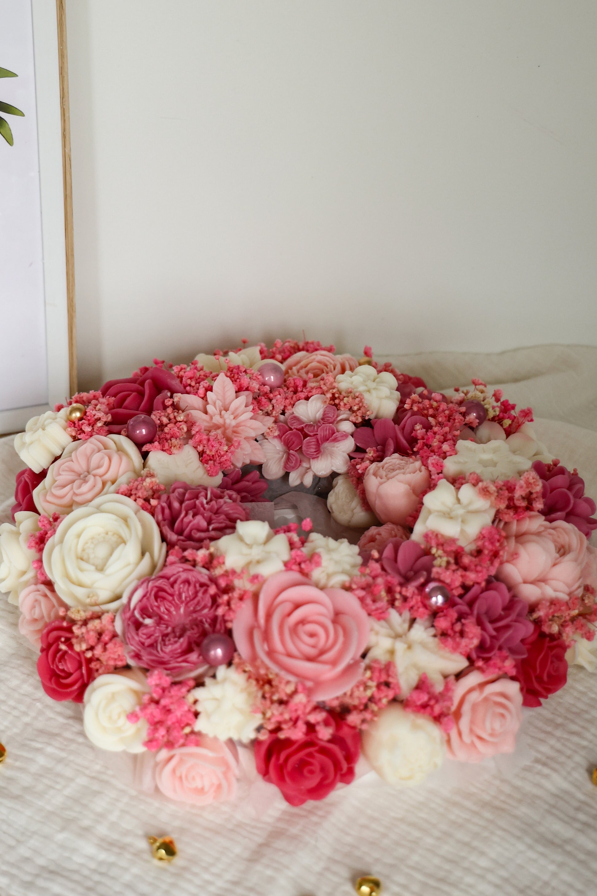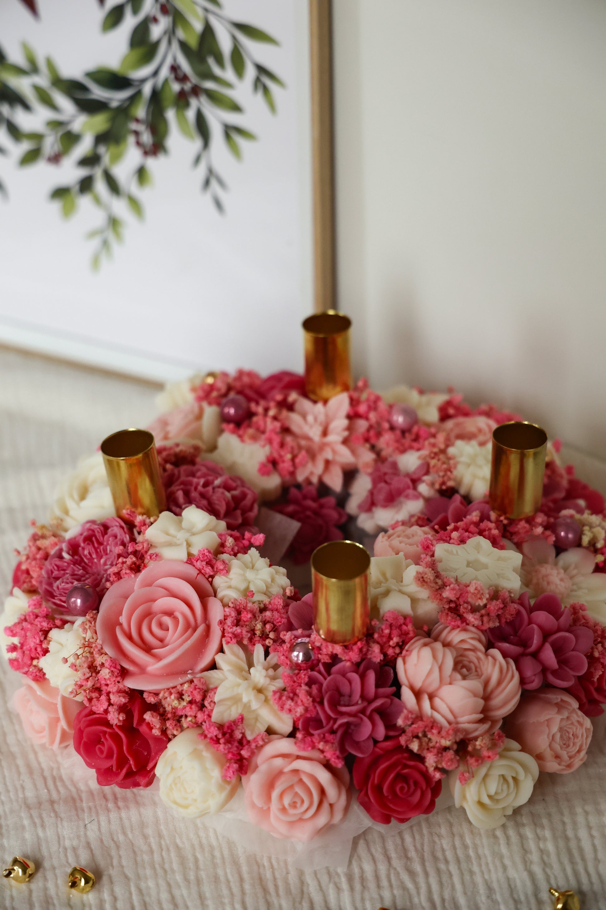 AusverkauftGroßer Weihnachtskranz aus Wachsblüten