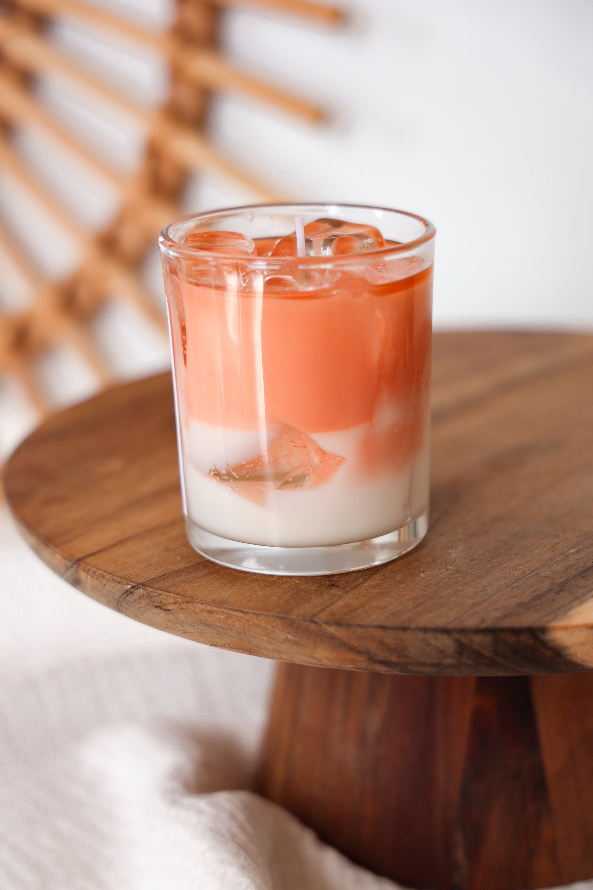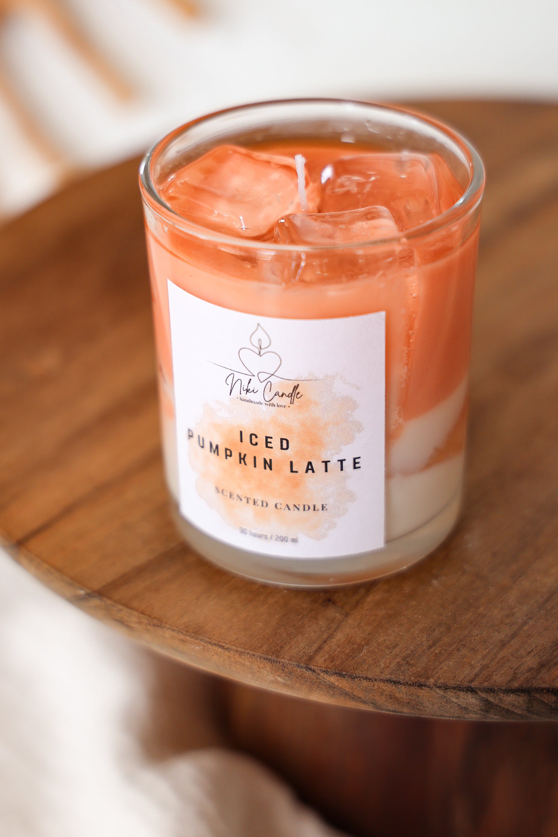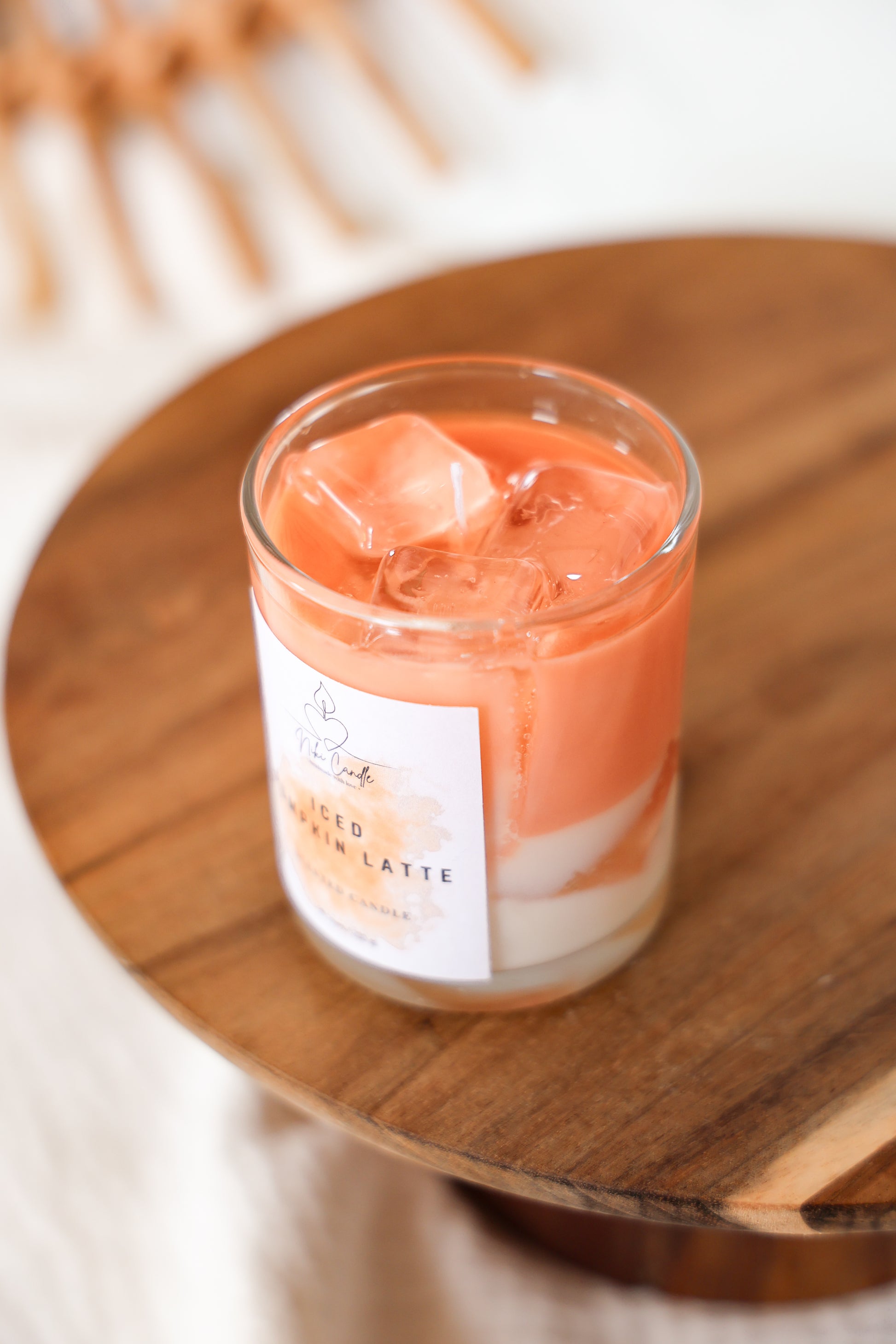 Handgegossene Kerze im täuschend echten Look aus Sojawachs mit sehr realistischen Eiswürfeln. Duftet leicht nach Pumpkin spice