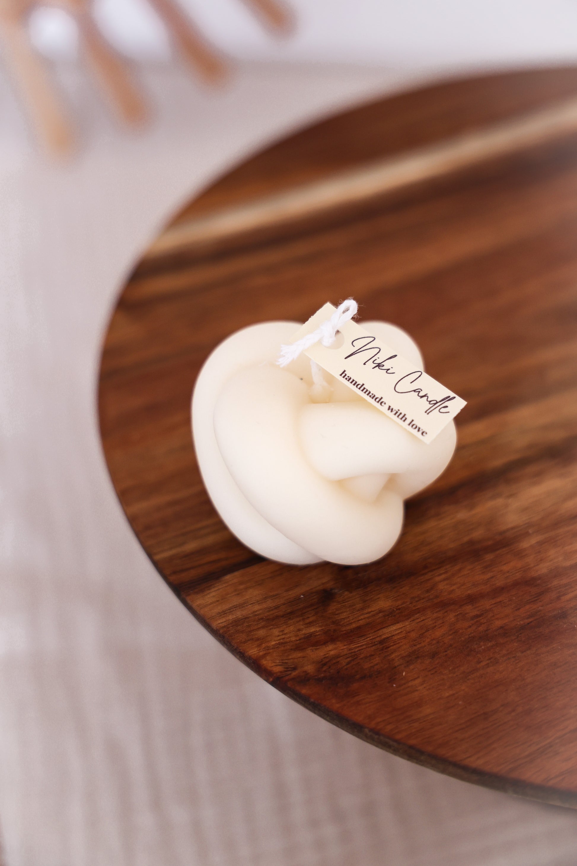 Sowie alle unsere Kerzen besteht auch der Knoten aus reinem Rapswachs, dazu verwenden wir einen Baumwolldocht.