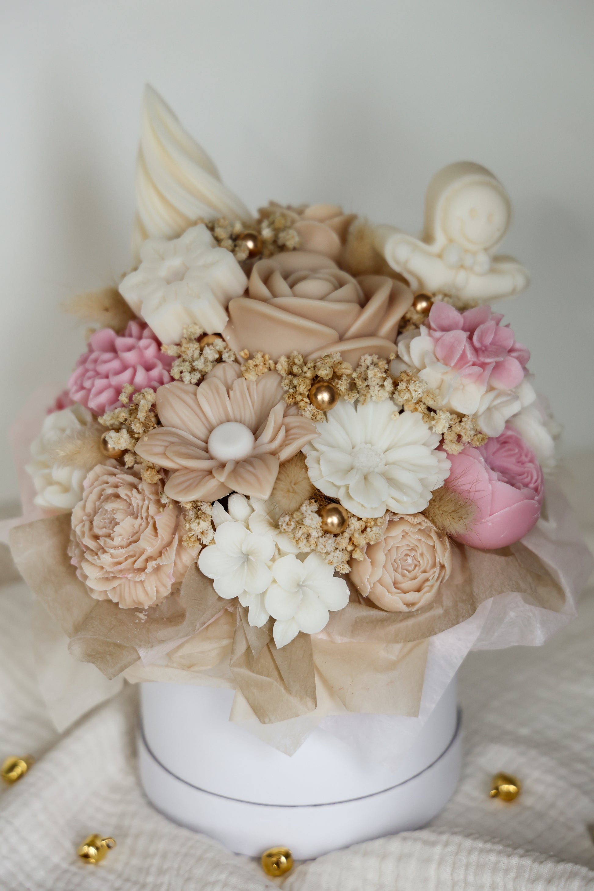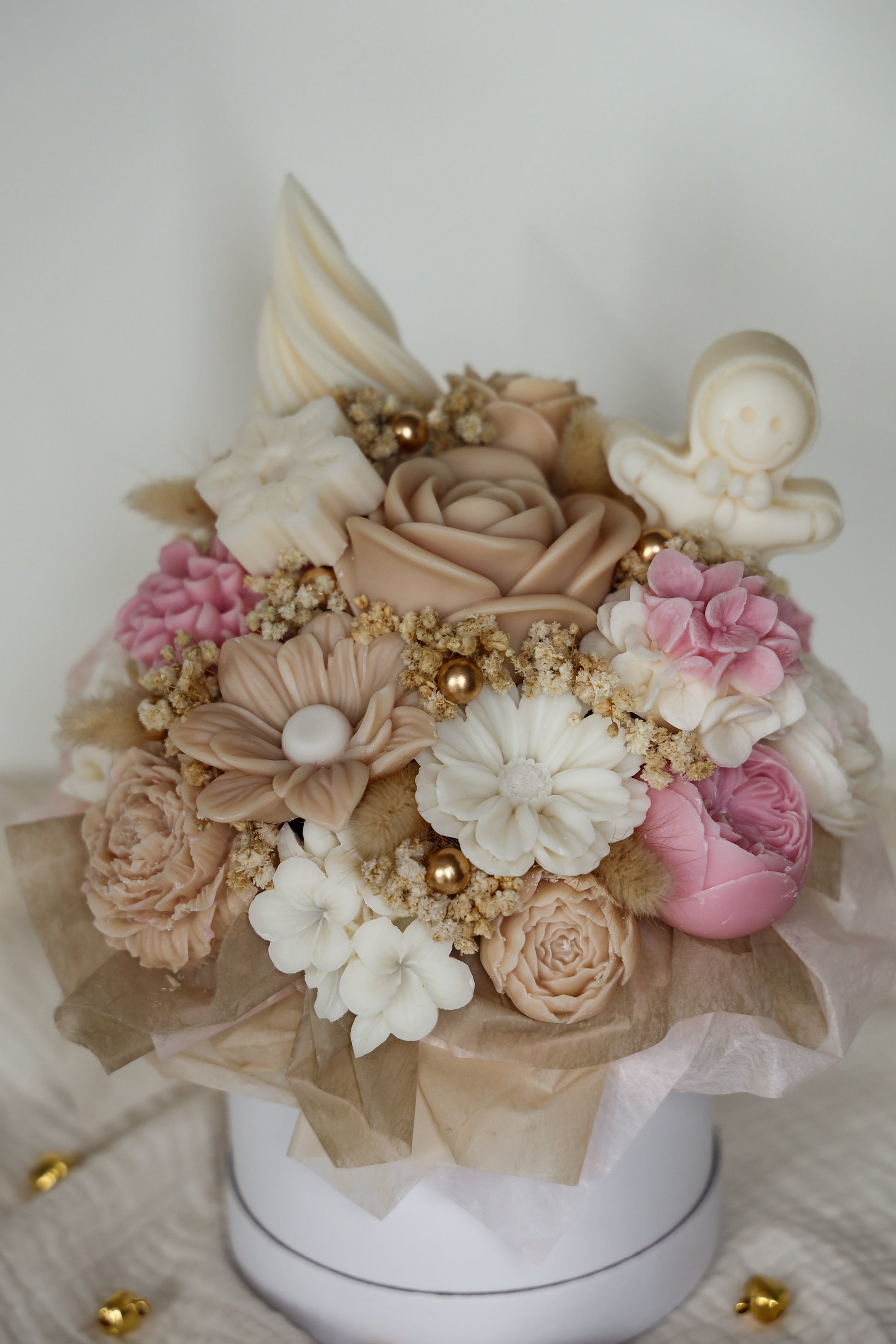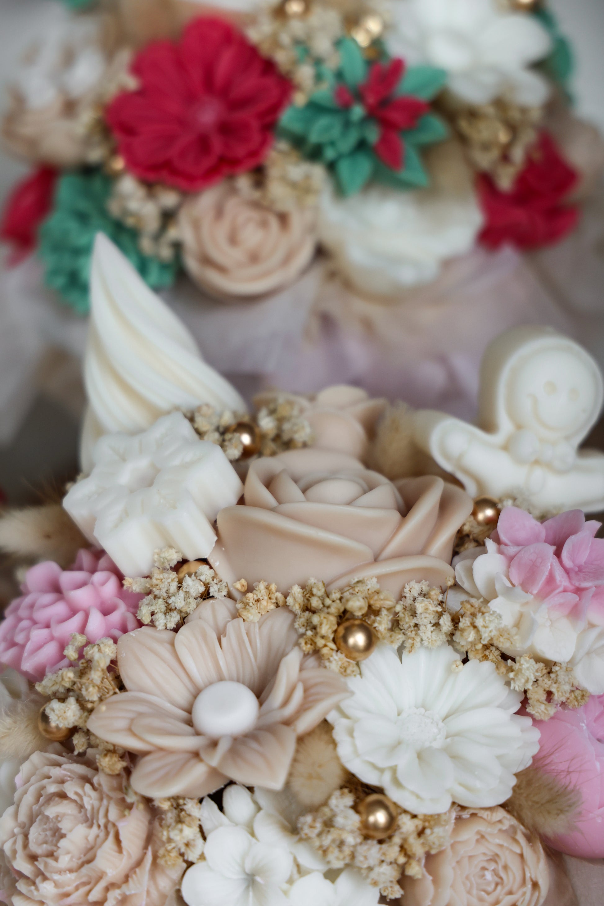 Weihnachtsblumenstrauß aus Wachs Pastell