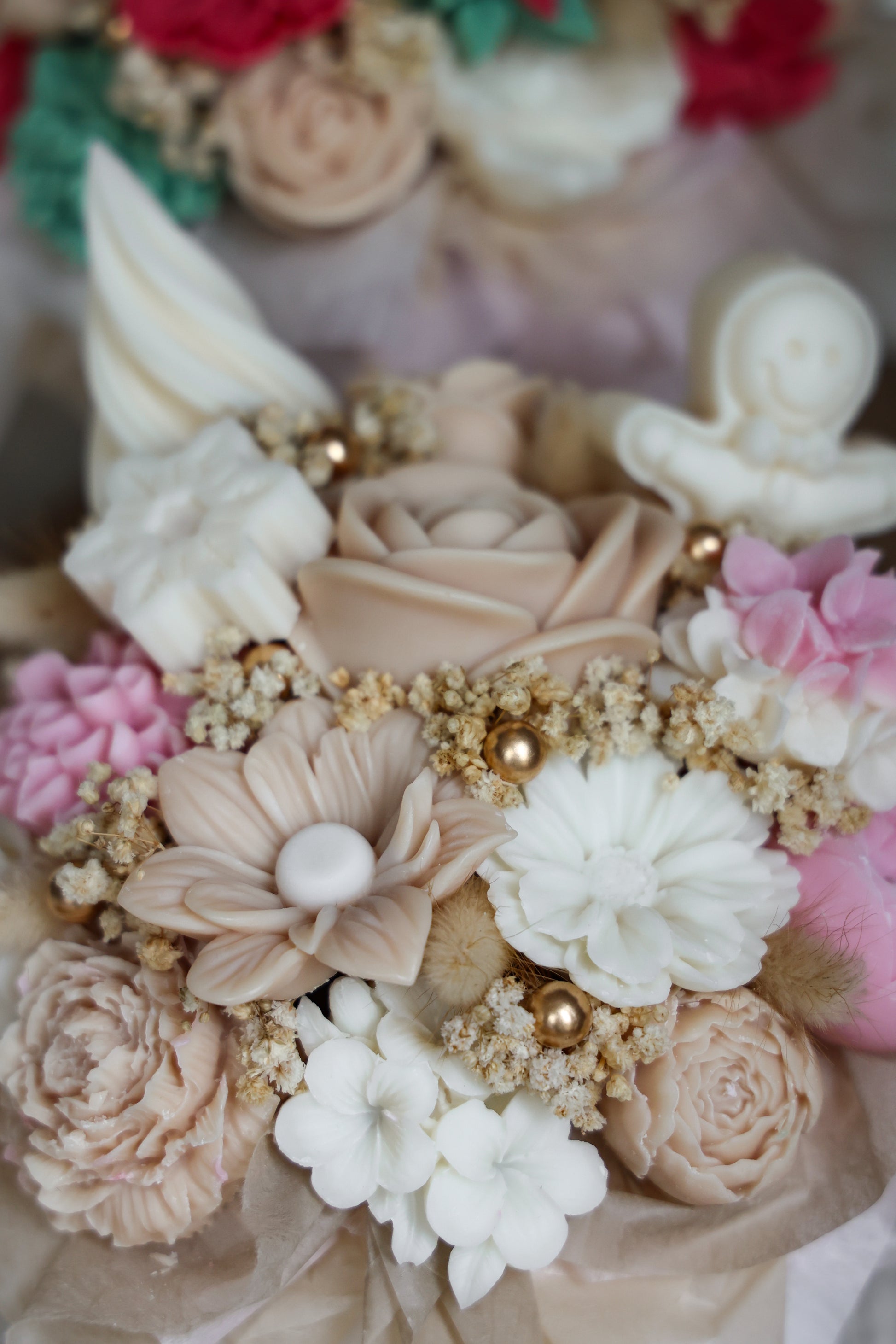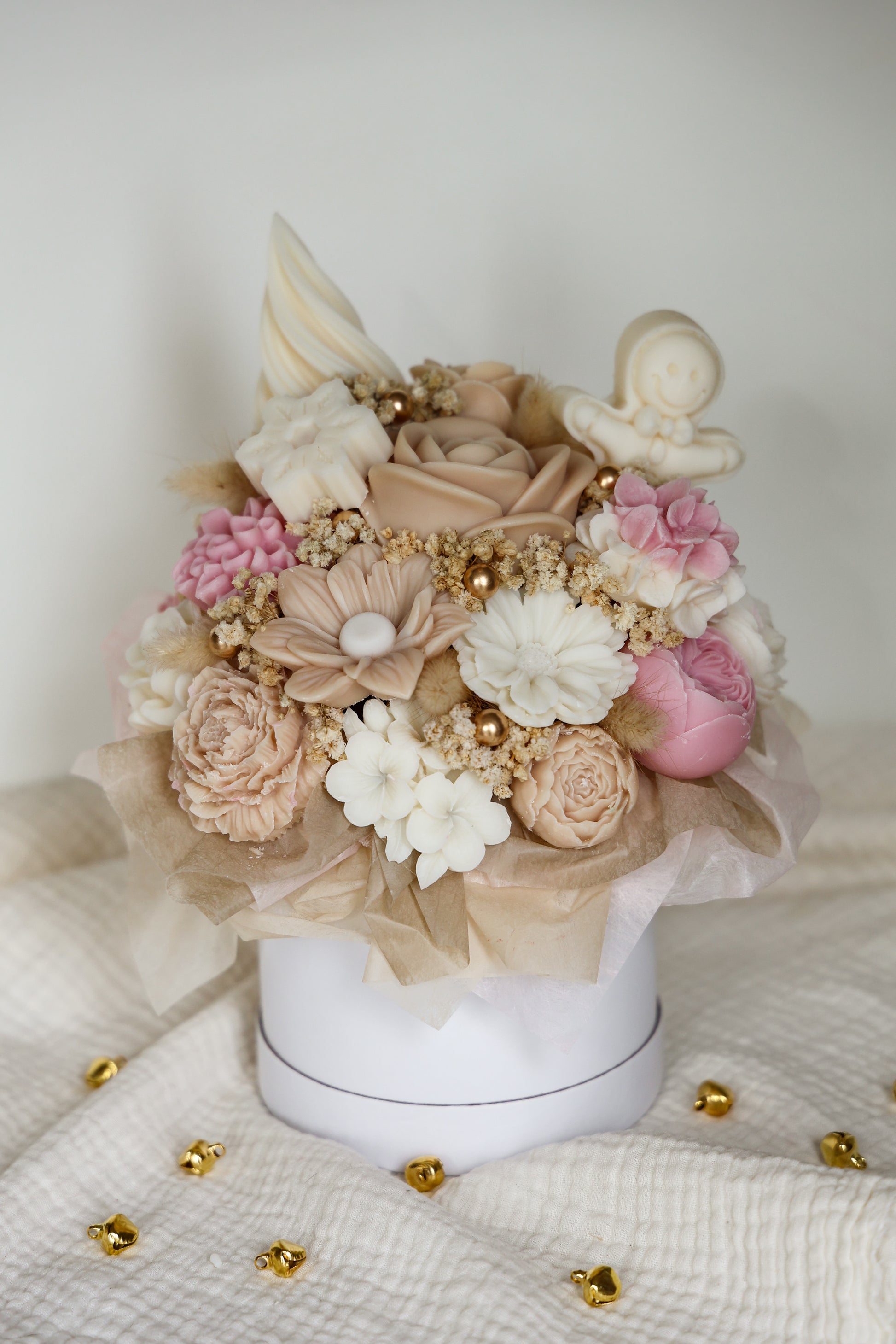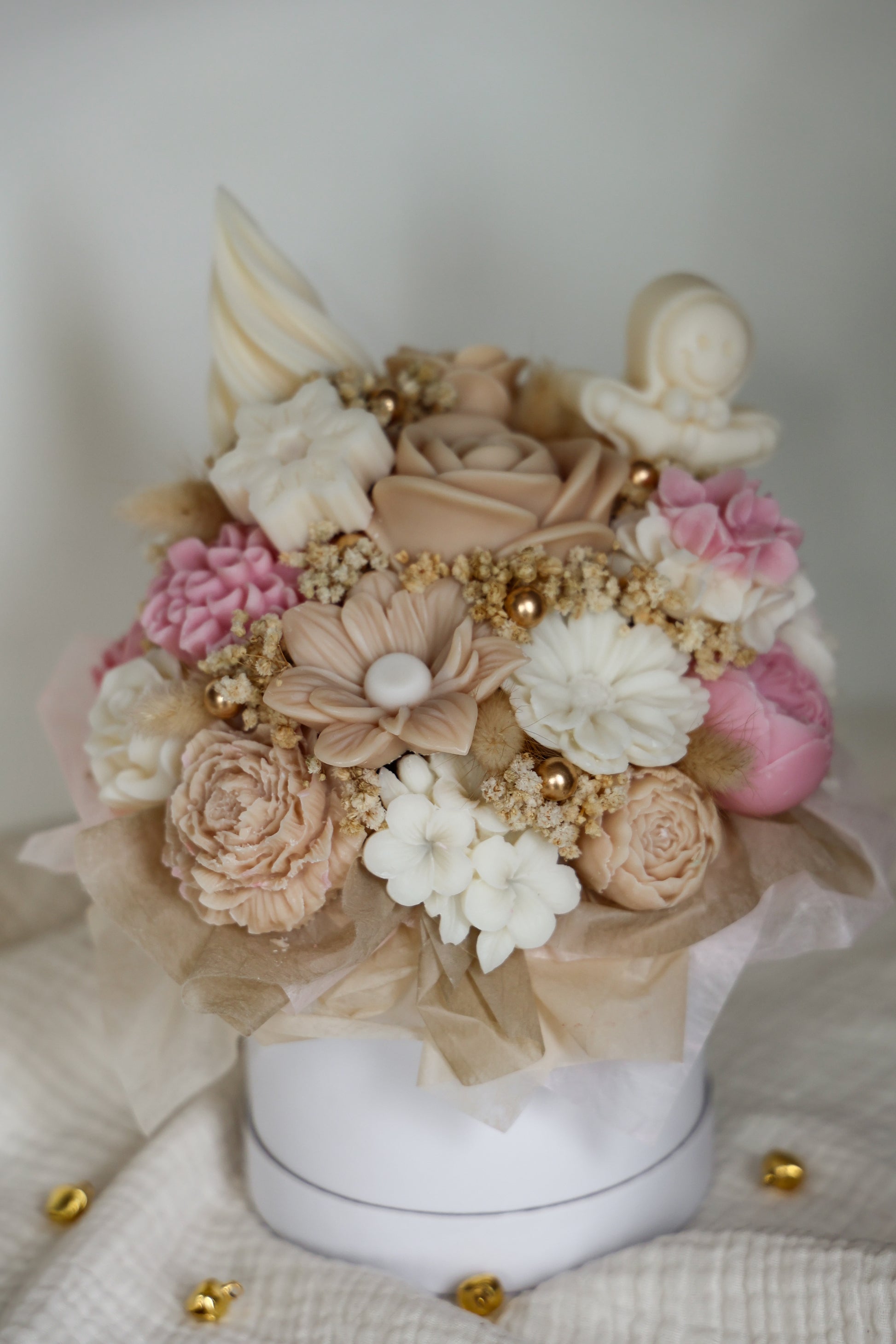 Weihnachtsblumenstrauß aus Wachs Pastell
