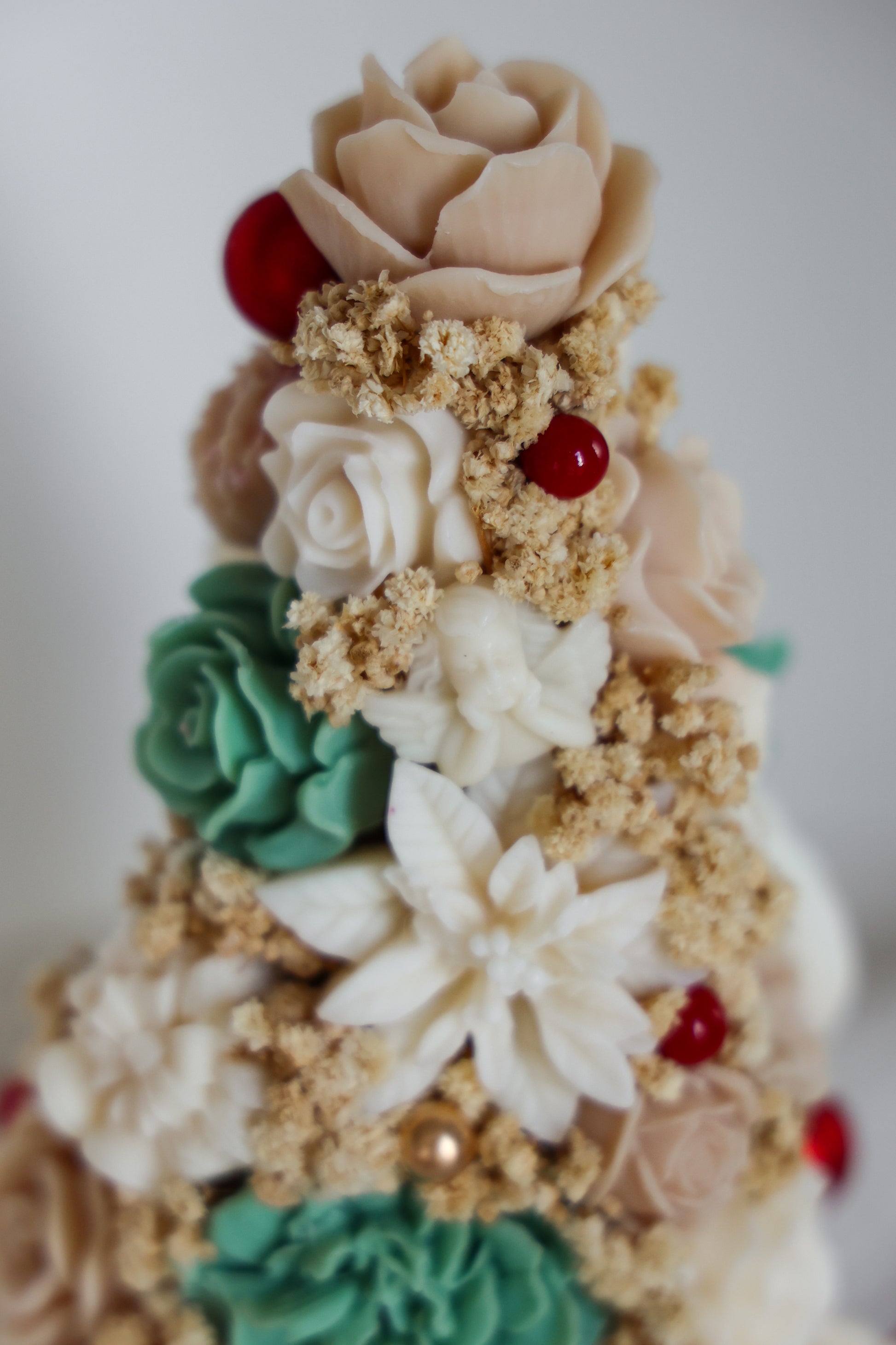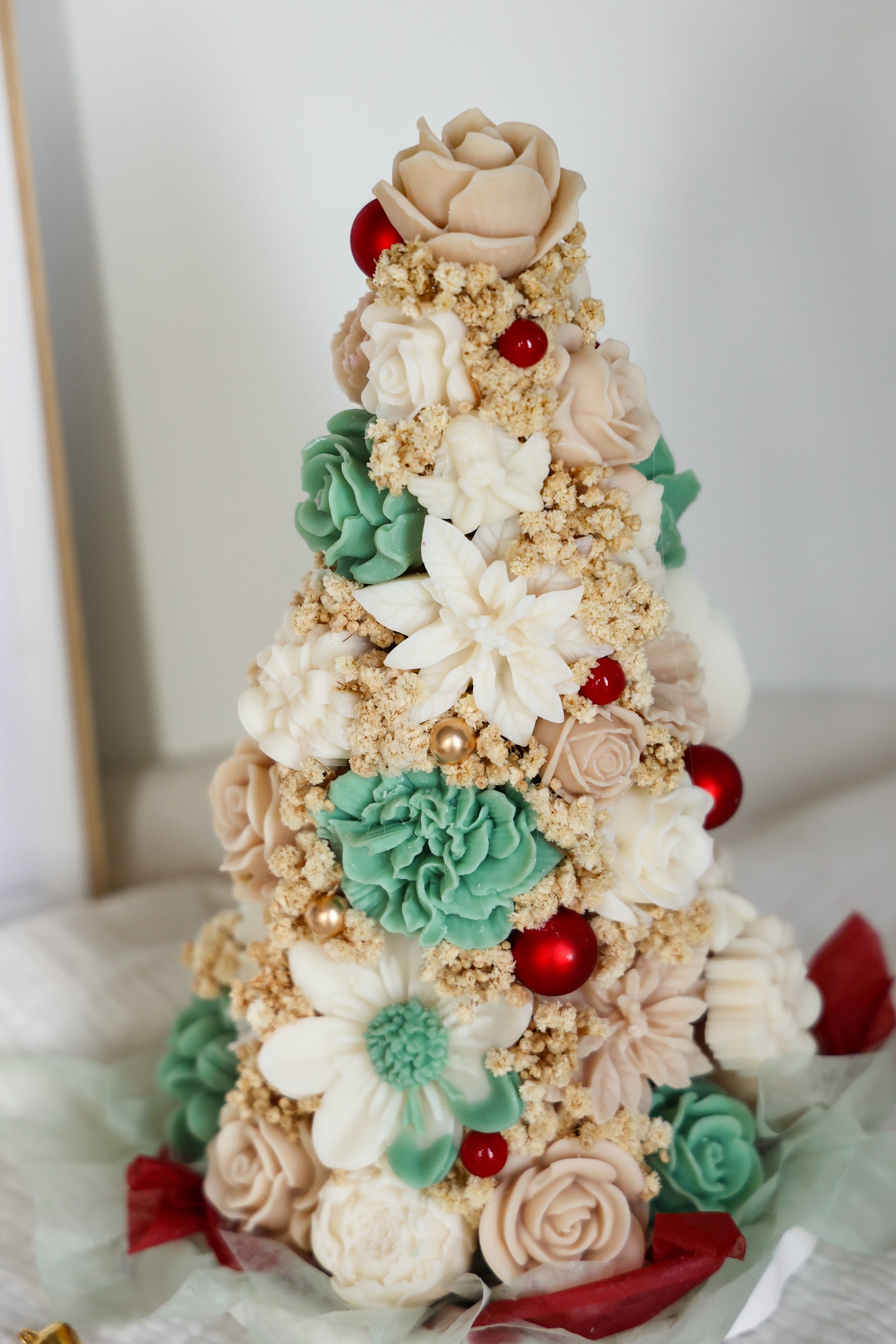 Handgemachte Tanne aus Wachsblüten aus Rapswachs.