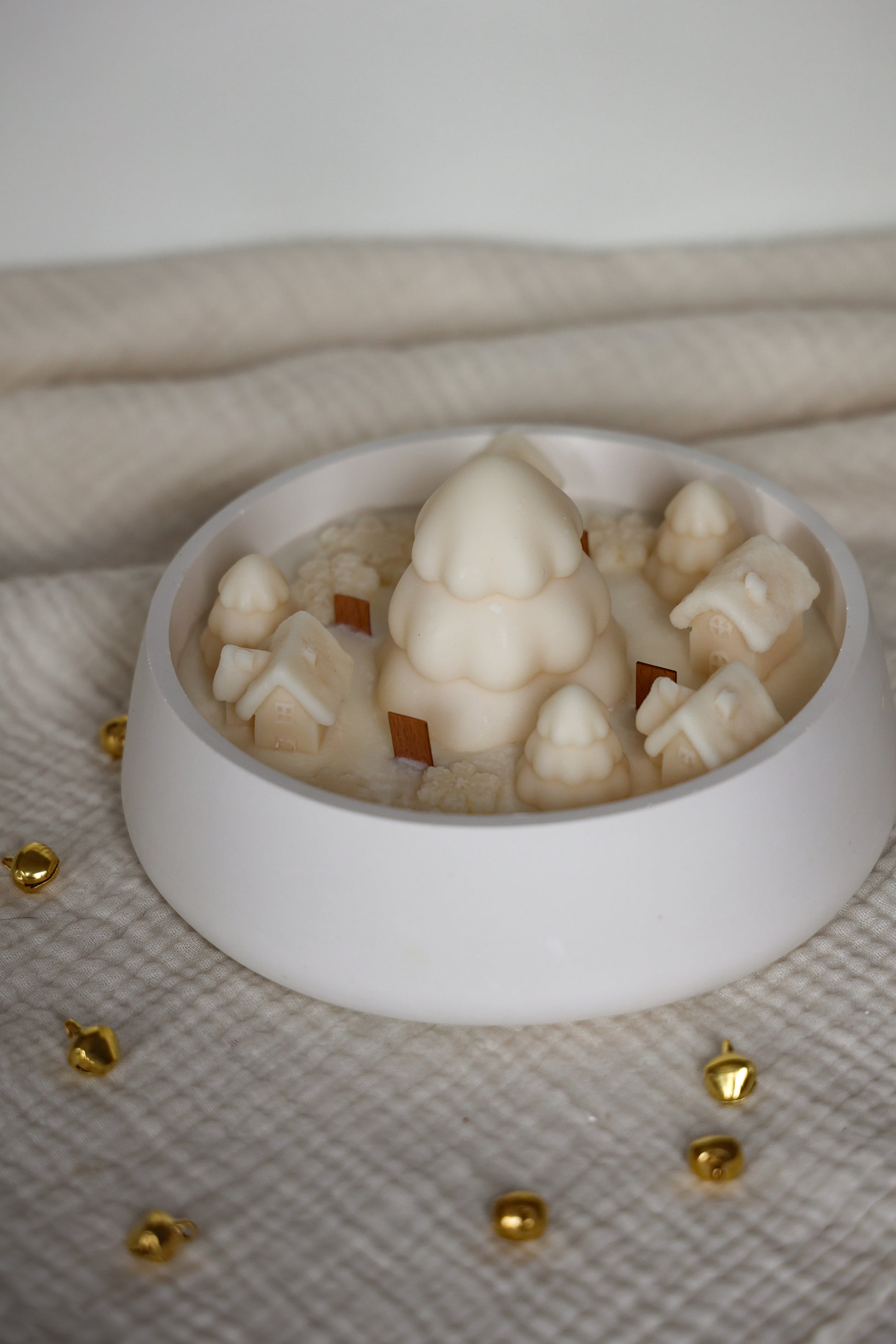 Ein winterliches Kerzendorf aus feinem Sojaduftwachs mit dem warmen Duft von Spekulatius – liebevoll gegossen in eine handgefertigte Keramikschale. Vier Holzdochte sorgen beim Abbrennen für ein sanftes Knistern und ein besonders gemütliches Ambiente.