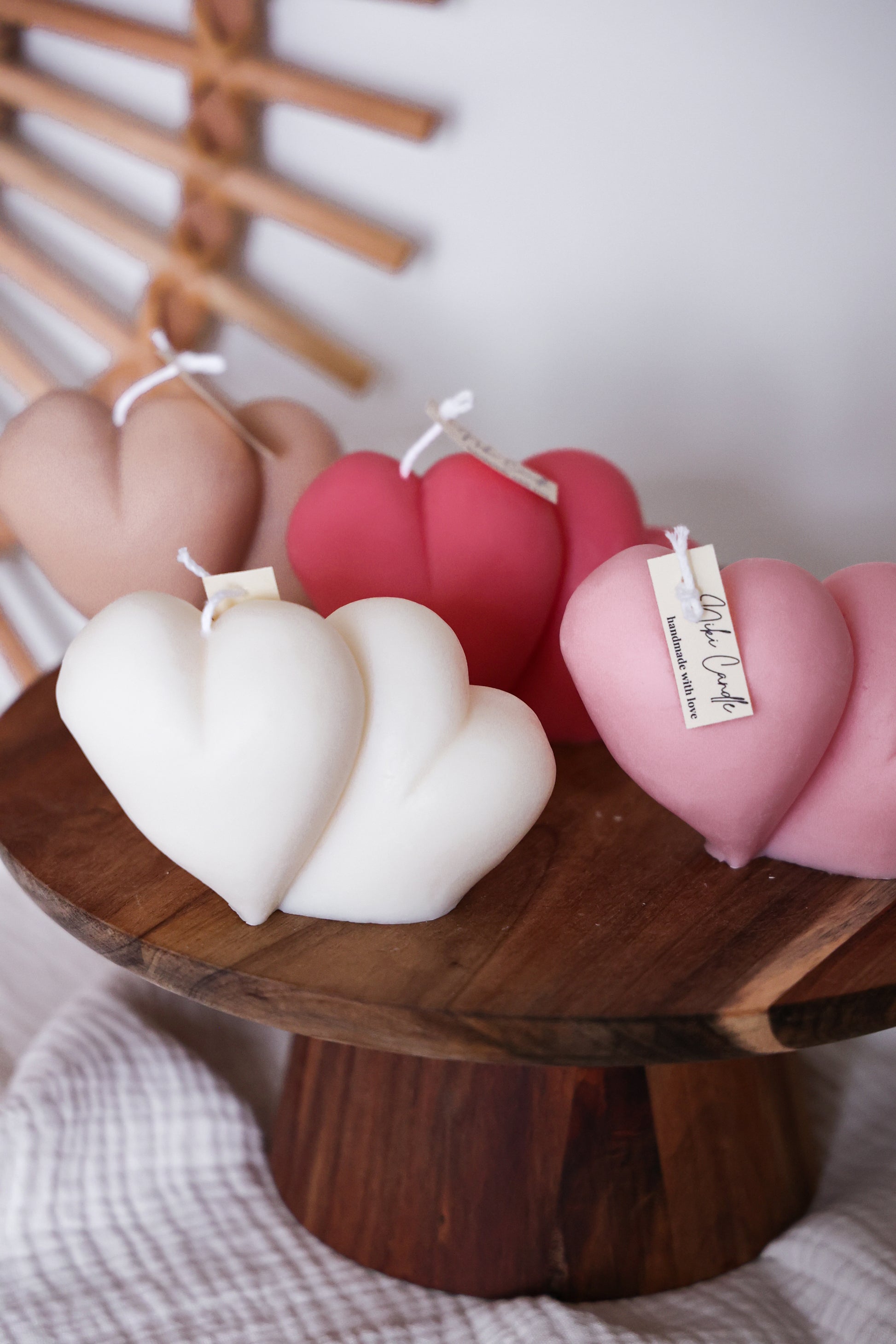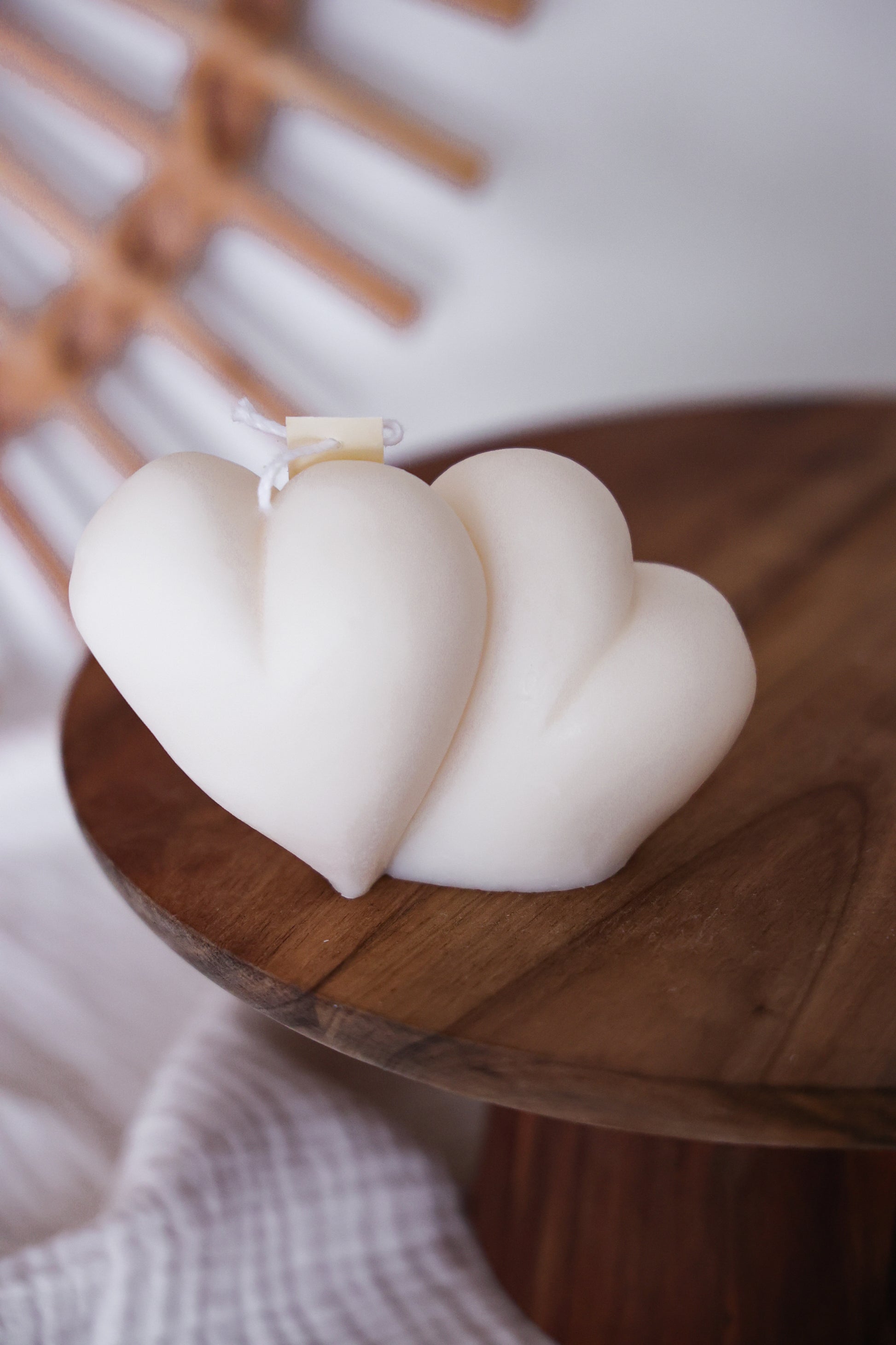 Handgefertigte Kerze „Zwei Herzen“ aus deutschem Rapswachs.